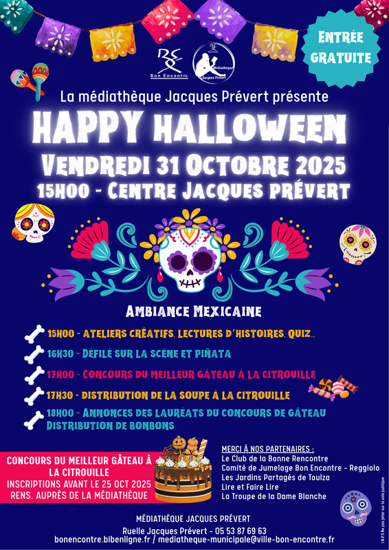 La Médiathèque Jacques Prévert vous convie à fêter Halloween le vendredi 31 octobre à partir de 15h00 au Centre culturel Jacques Prévert !